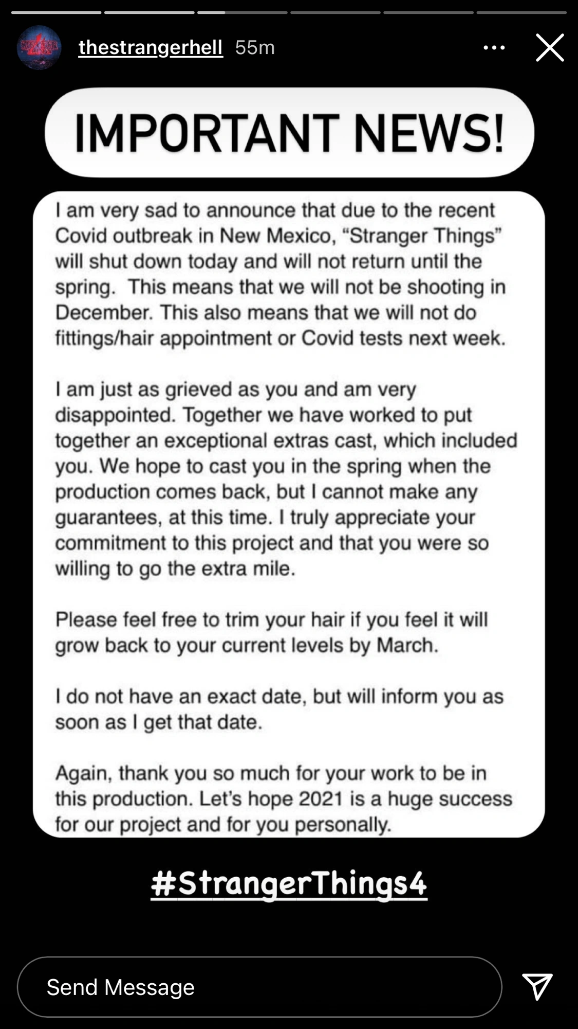 - Stranger Things Season 4 Filming Wraps In Vi Go Vilnius : We Are Waiting To Hear From Production In Atlanta When We Go Back Into Production. The Casting Director Added That Despite The Hiatus, It Is A Great Time For New Mexico Actors To Start Growing.